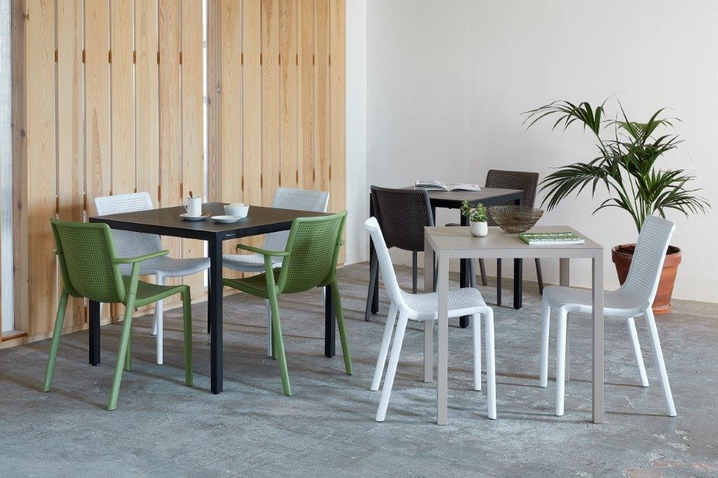 Josep Llusca is de ontwerper van de Kat-serie kunststof stoelen voor het Spaanse merk Resol. Deze sterke kunststof horecastoelen zijn geschikt voor binnen- en buiten gebruik. De Kat stoel is gemaakt van UV bestendig polypropyleen versterkt met glasvezel. De kunststof stoelen zijn licht in gewicht en eenvoudig stapelbaar. De armsteun is sterk en praktisch kort zodat de stoel aan een tafelblad kan worden opgehangen. De Beekat en de Netkat hebben een opengewerkt gaatjes patroon in zitting en rug wat zorgt voor luchtigheid en waterdrainage. Deze mooie designstoel heeft een uitstekende kwaliteit en duurzaamheid. Het is tevens een ideale projectstoel voor intensief gebruik en volledig recyclebaar. Geproduceerd in Europa.