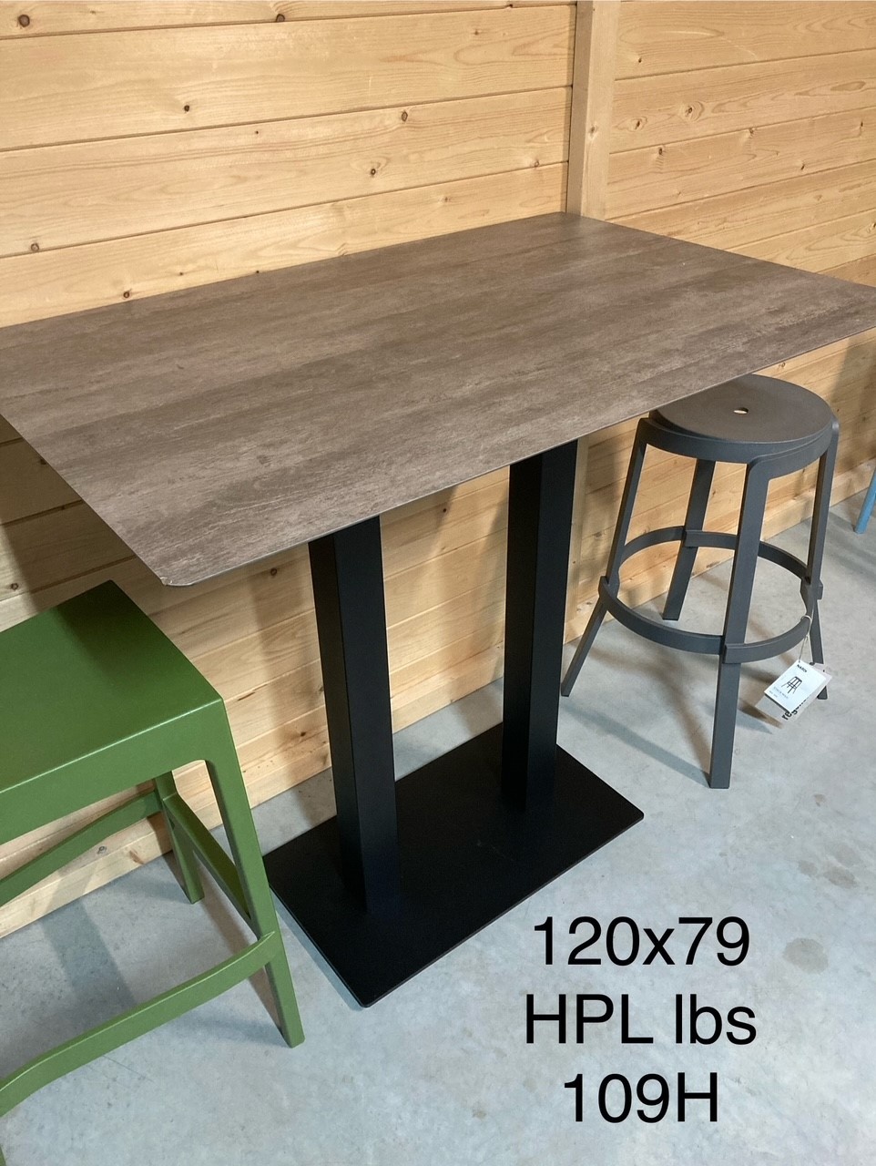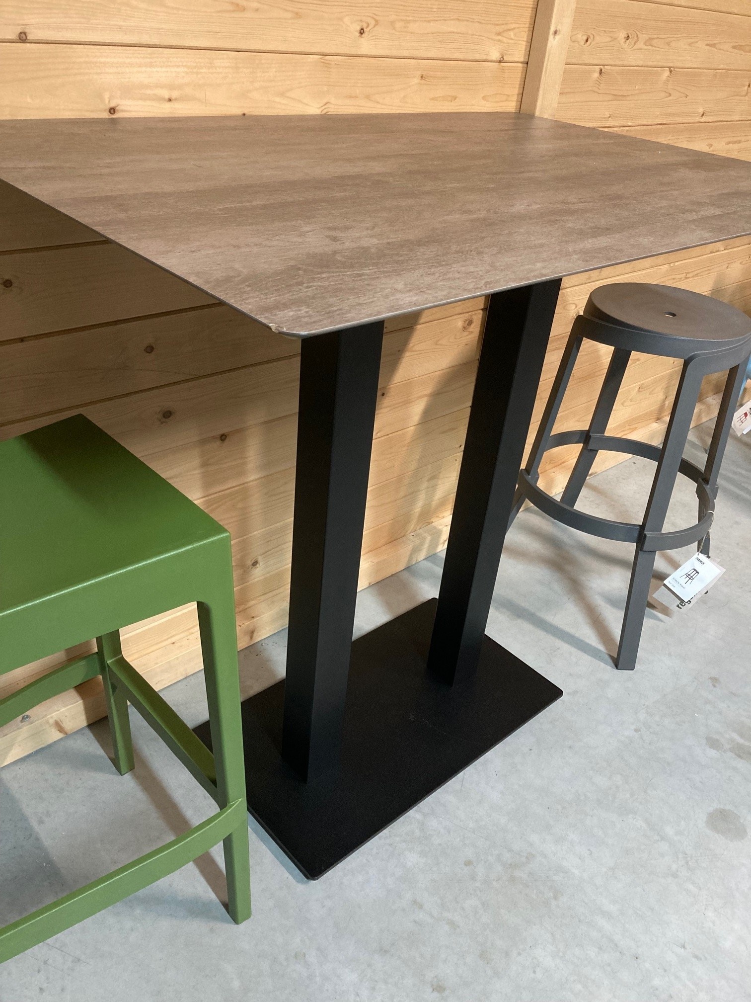 Bistro hoog onderstel Tapies dubbel van het Spaanse merk Resol heeft een dubbele vierkante stalen staander en een vlakke stalen voetplaat van 70x40 cm. Het mat zwarte dubbele onderstel is geschikt voor binnen gebruik, maar ook toepasbaar voor buiten onder een overkapping. Dit dubbele hoge bistro onderstel kan worden uitgevoerd met een HPL topblad van 120x80 cm. Eenvoudige montage en zeer onderhoudsvriendelijk. De beschikbare HPL bladen zijn robuust en beschikbaar in diverse kleurtinten. De vlakke voetplaat heeft stelvoetjes.