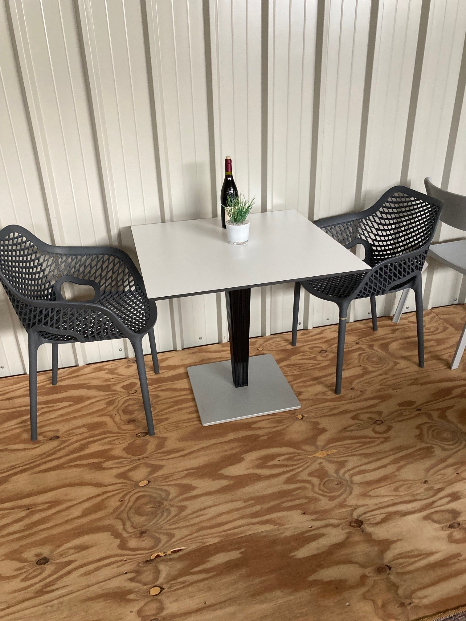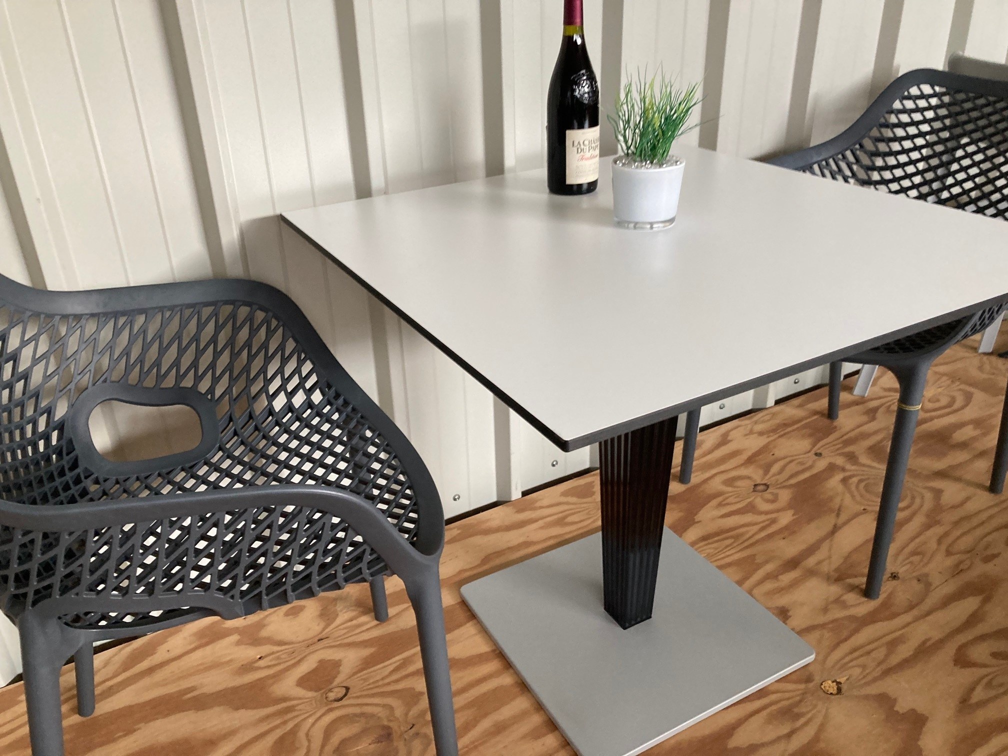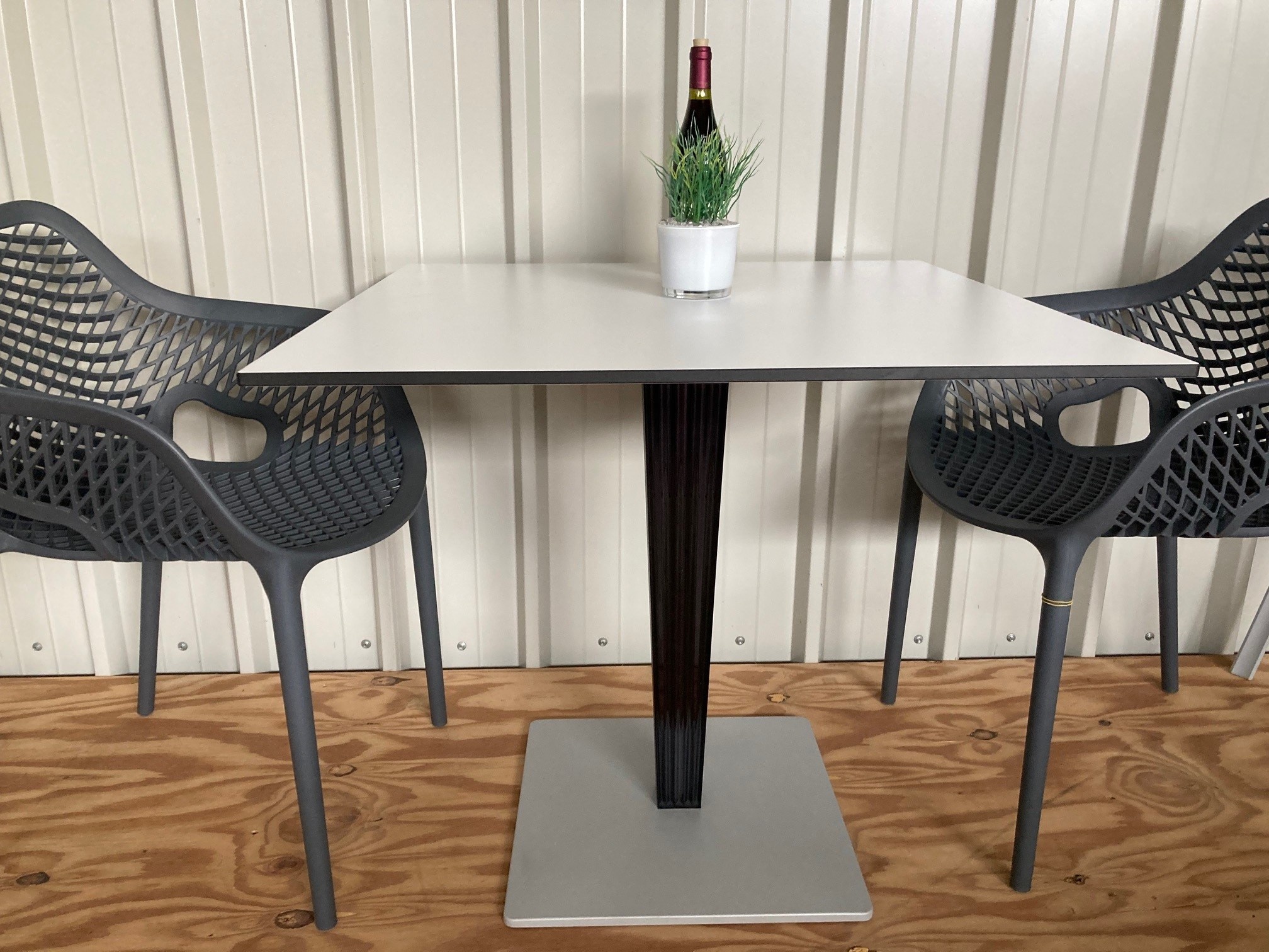 Bistro tafel met 80 x 80 HPL blad en 2 armstoelen