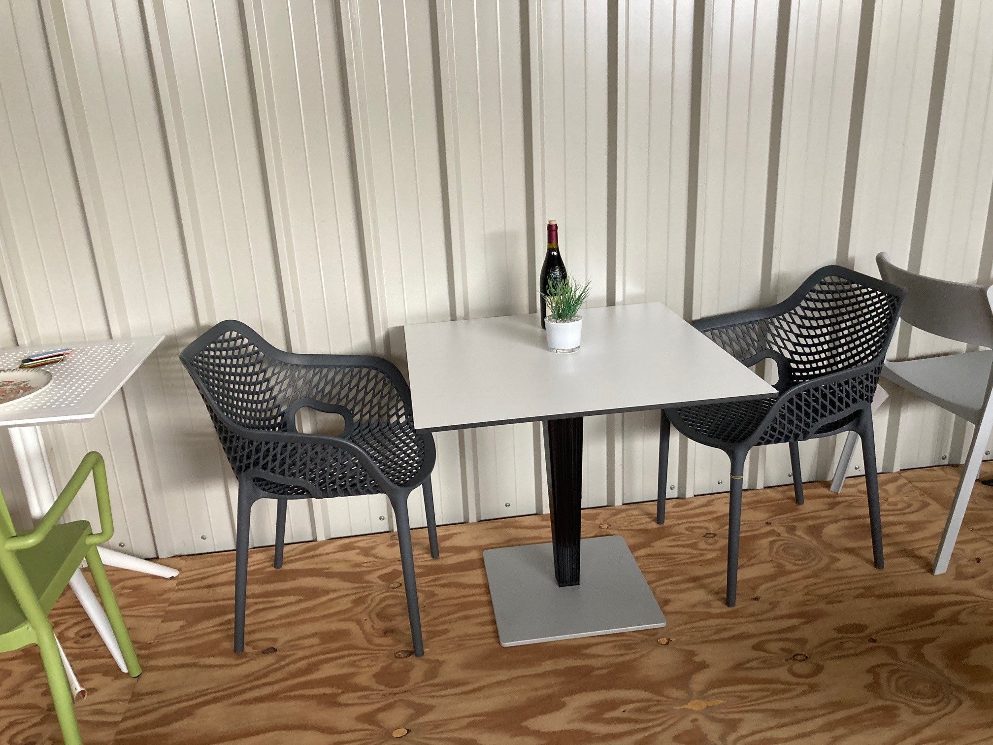 Bistrotafel Lulu met HPL blad en 2 moderne stoelen
