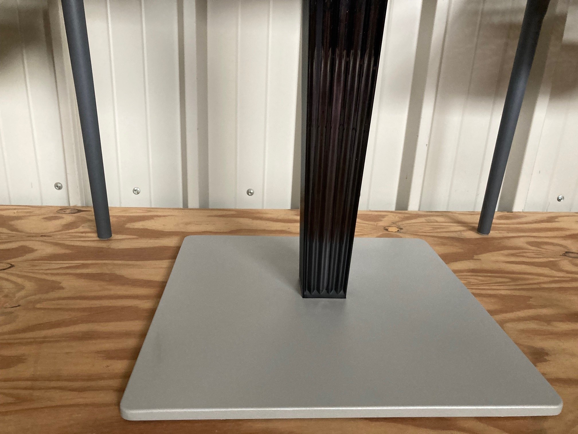 Bistro tafel Lulu heeft een kunststof staander van polycarbonaat en een HPL topblad van 80cm. De verzwaarde stalen voetplaat is grijs. Alle onderdelen zijn eenvoudig te monteren en demonteren. Geschikt voor binnen en buiten gebruik. Een chromen buis wordt omsloten in de zwart transparante staander. De opengewerkte AirXL armstoelen zitten perfect en zijn UV- en weerbestendig. Een moderne complete bistroset.