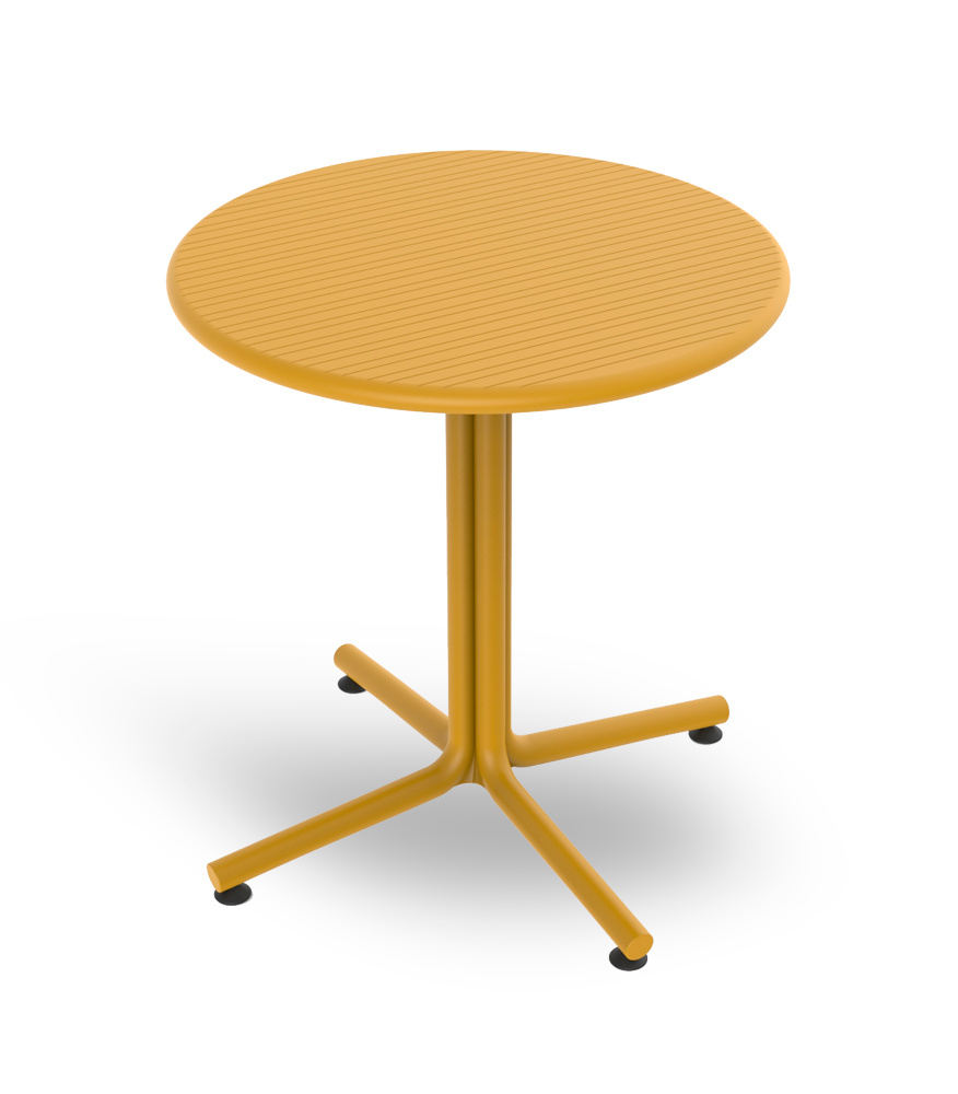 Het onderstel is opgebouwd uit vier gelijke kunststof delen die met elkaar worden verbonden en hebben stelvoetjes. Het ronde kunststof topblad met fijne lijn structuur heeft een diameter van 70cm en is gemakkelijk te onderhouden. De gehele bistrotafel is gemaakt van polypropyleen versterkt met glasvezel en daarmee zeer duurzaam en recyclebaar. Eenvoudige montage. Een stevige en duurzame terrastafel met een modern uiterlijk. Projectmatig getest.