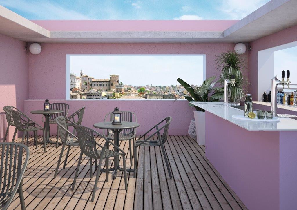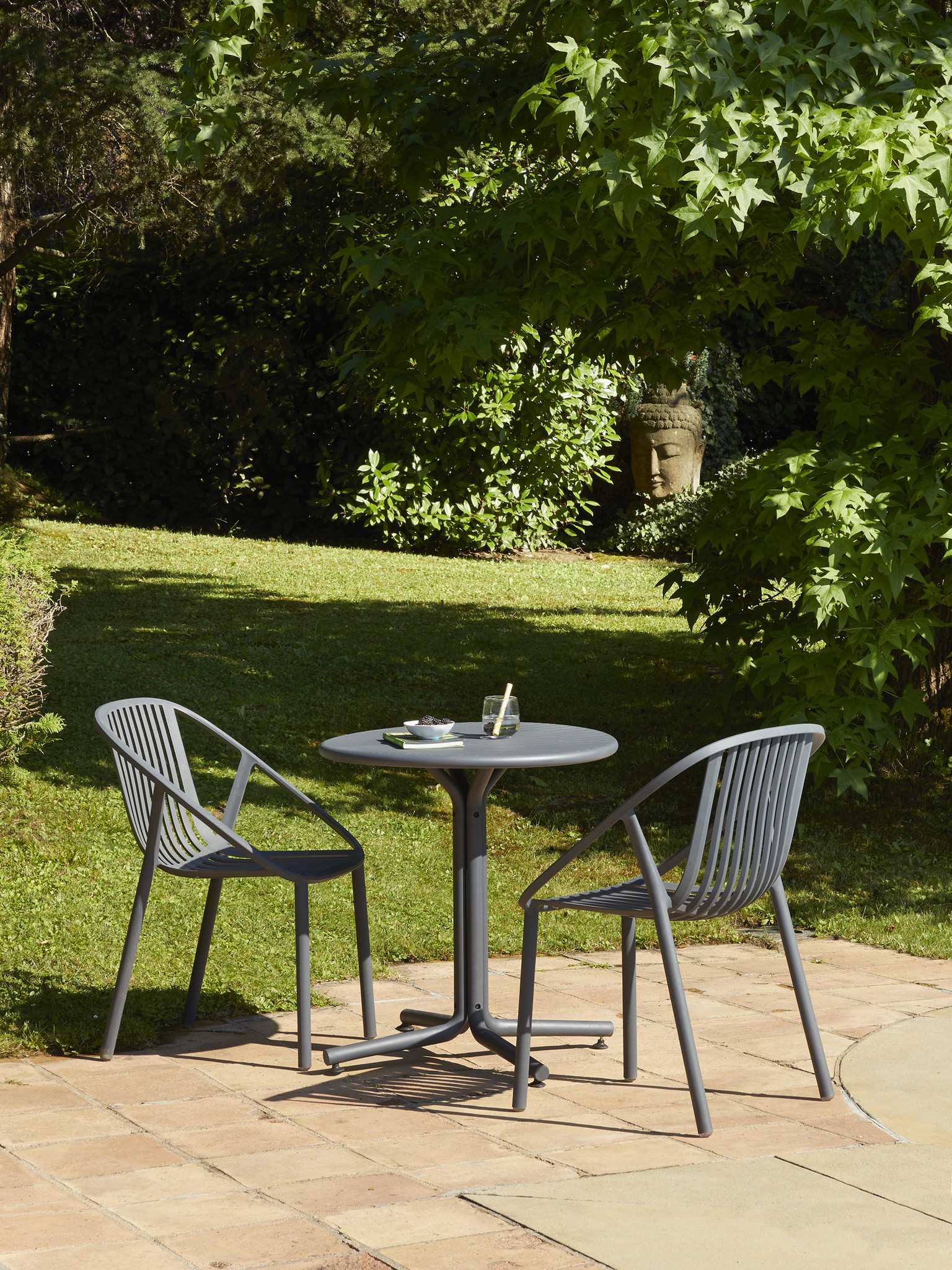 De Bini kunststof design bistrotafel is ontworpen door Joan Gaspar voor het Spaanse merk Resol. De weersbestendige en UV-beschermde bistrotafel met rond kunststof topblad is geschikt voor binnen en buiten gebruik.