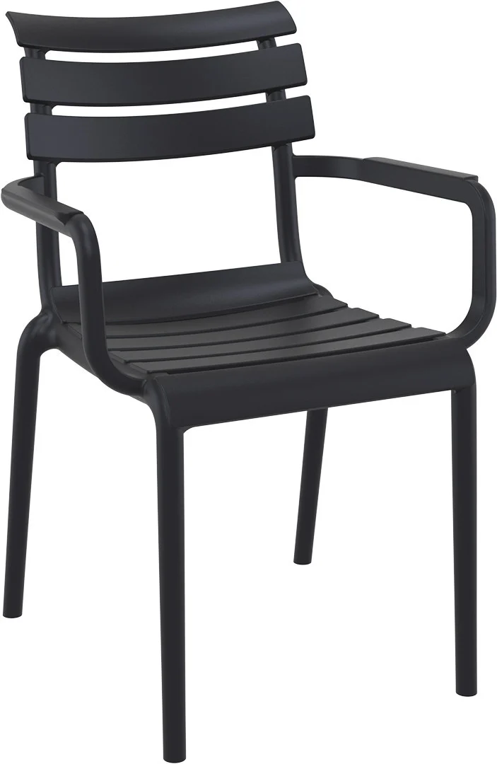 De Paris armstoel armstoel van Siesta is een moderne kunststof tuinstoel met een aluminium-uitstraling, maar met het gemak van één stevig geheel. Hij is licht van gewicht, waardoor je hem makkelijk verplaatst op het terras of snel bijzet als er extra gasten zijn. De rugleuning sluit prettig aan en de armsteunen maken het zitten comfortabel, ook tijdens een langere lunch of borrel.