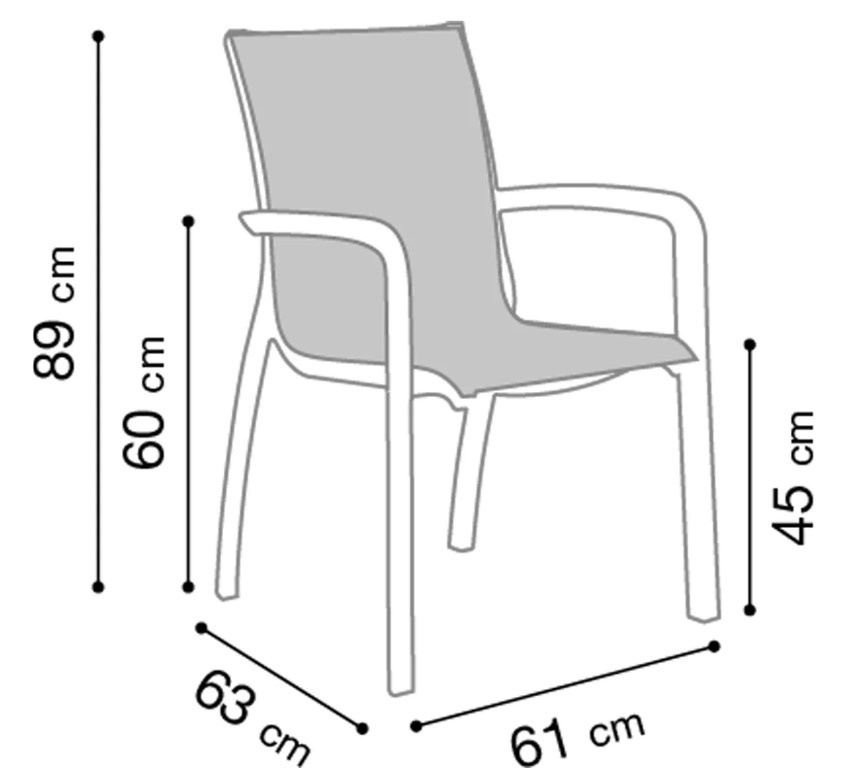 Afmeting: B 61 x D 63 x H 89 cm - zithoog 45 cm - armhoog 60 cm - gewicht 5,1 kg