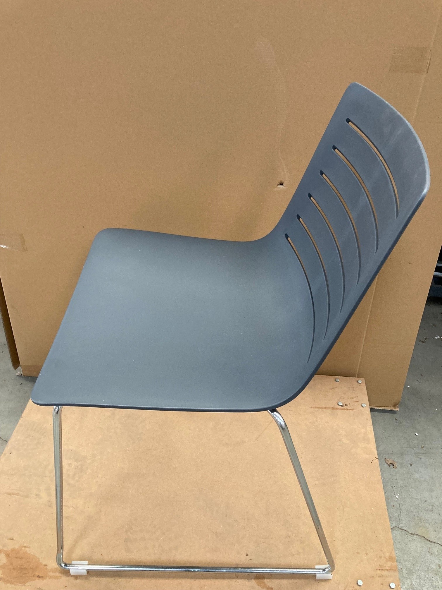 Resol designer Josep Llusca heeft een tijdloze stapelbare projectstoel voor binnen gebruik ontworpen. Een verchroomd slede onderstel waarop een flexibele gekleurde kunststof zitting met eigentijds open lijnen patroon is geplaatst. Het gekleurde polypropyleen is UV-beschermd, duurzaam, zeer onderhoudsvriendelijk en recyclebaar. Mooi voor in ieder interieur of publieke ruimte. De stoelen zijn projectmatig getest.