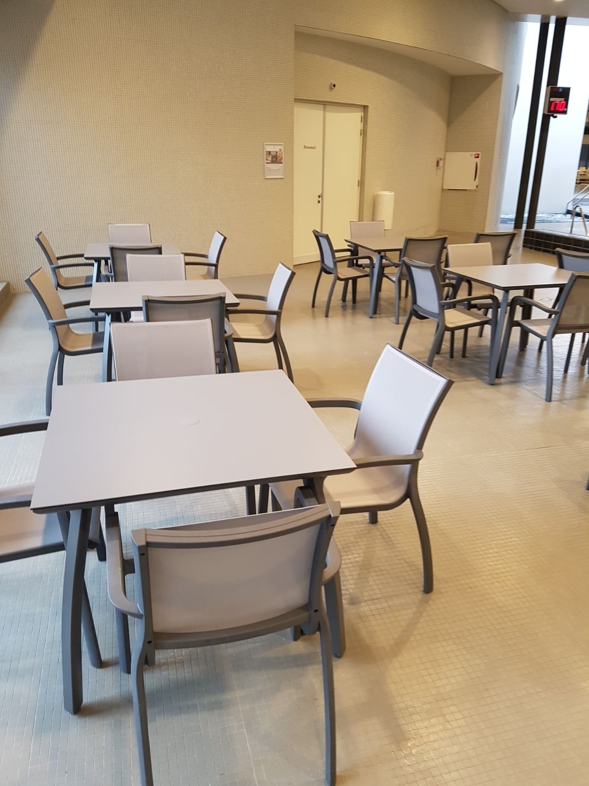 1 stuks showroommodel Vul.zwart onderstel - Licht egaalgrijs HPL tapeblad (kleurstelling laatste foto)
